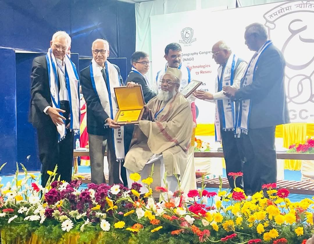 It is moment of happiness and proud for Prof. Nizamuddin Khan and Department of Geography, AMU that National Association of Geographers, India, conferred prestigious “Bhoogol Vachaspati Award 2024” to Prof. Nizamuddin in 46 NAGI conference held at Department of Geography, osmania university, Hyderabad during 27-29 December 2024